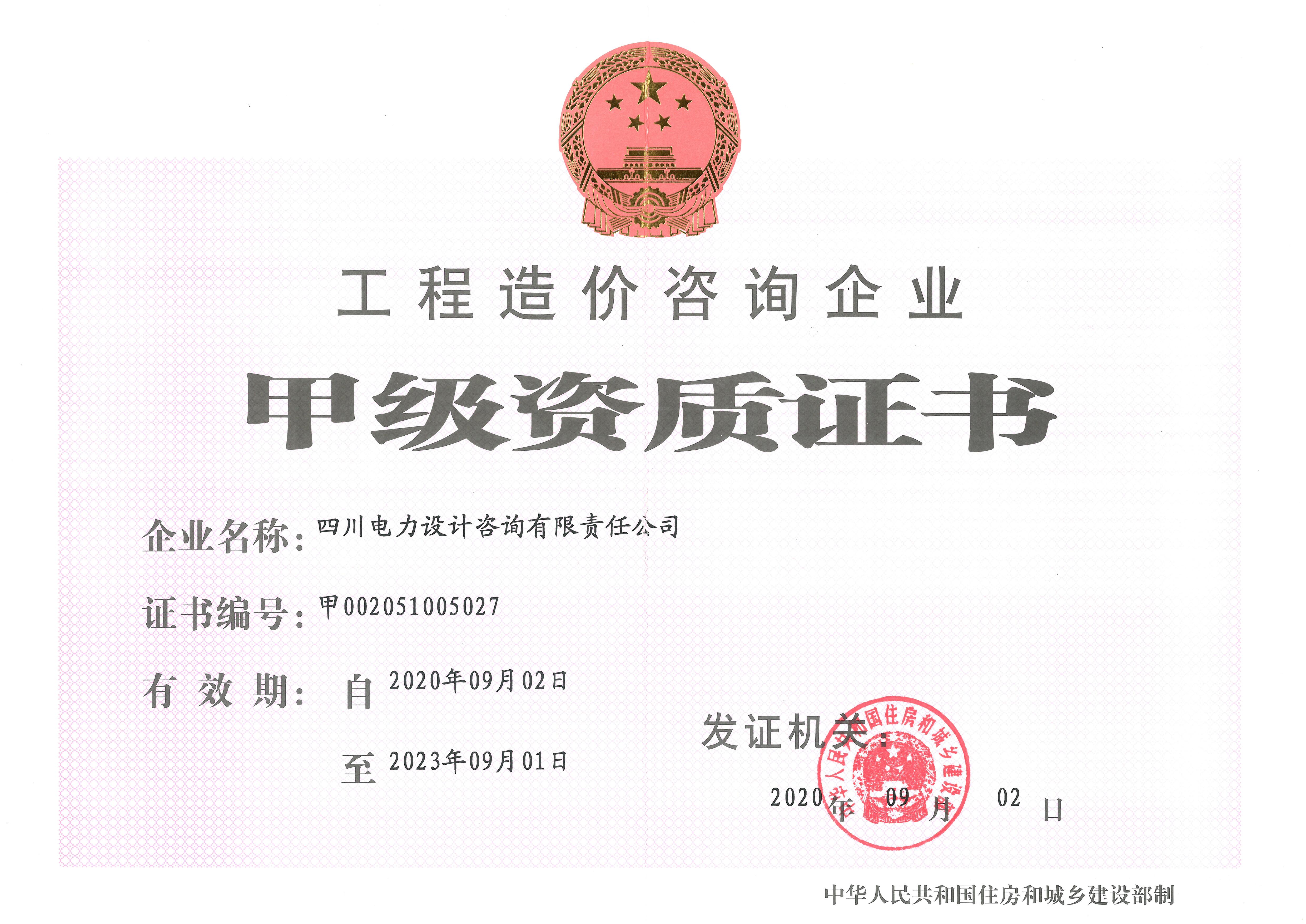 工程造价咨询企业甲级资质
